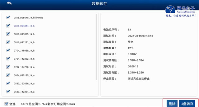 測試過(guò)程中數據(ju)會自動保(bǎo)存到儀表(biǎo)内部,支持(chí)測✉️試曆史(shi)數據㊙️查看(kàn)、删除、U盤導(dǎo)出