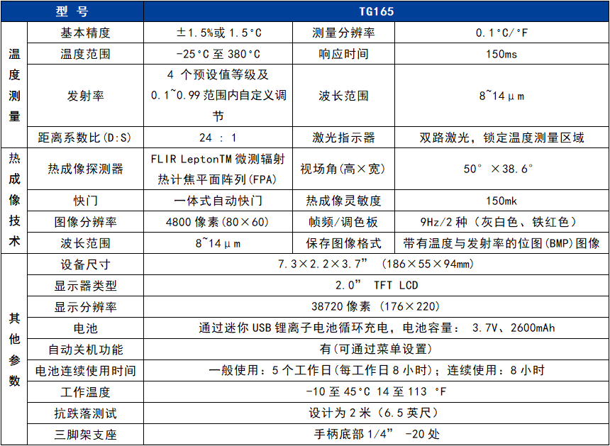 ①真正的(de)熱成像技(jì)術技(ji)術參數