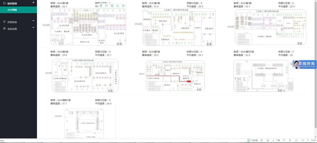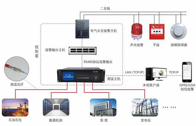 在機房設備(bèi)及線路上配(pèi)置FGT系列分布(bù)式光纖溫度(du)監測系㊙️統,實(shí)現機房溫度(dù)實時監測,趨(qu)勢分析,事故(gù)的遠程準确(què)探測、預警、報(bào)警等