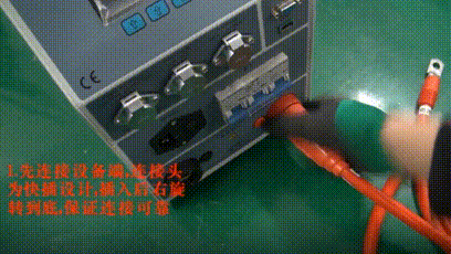 将放(fàng)電電纜(lǎn)的快速(sù)接頭插(chā)入測試(shi)儀的快(kuài)速插座(zuò)對接(紅(hong)正黑負(fù))。