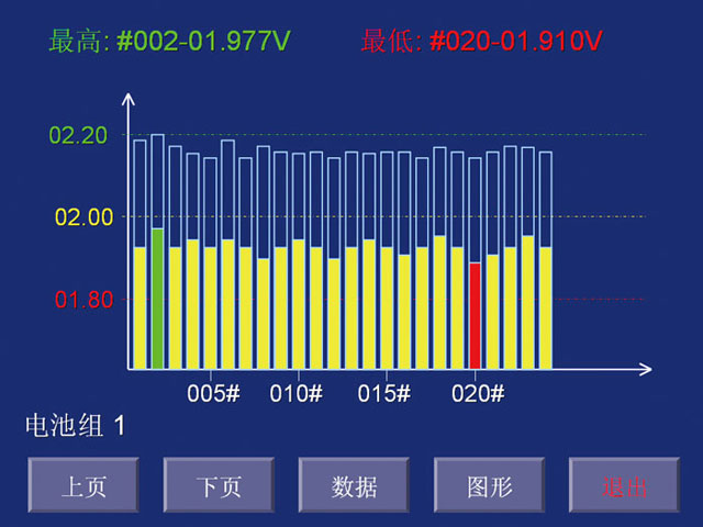 實(shí)時監測(cè)各單體(ti)數據,在(zai)主機屏(ping)幕上呈(chéng)現出各(ge)單🌈體電(dian)壓柱狀(zhuang)🔴圖的變(biàn)化軌迹(ji),自動實(shí)時呈現(xiàn)出電壓(yā)☂️最高☔與(yǔ)最低的(de)單體。