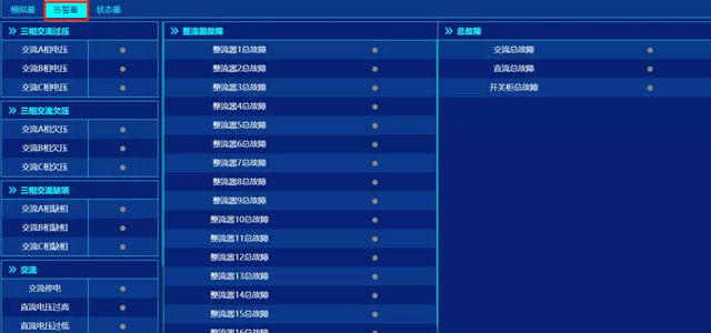 系統(tong)平台實時(shí)監測高頻(pin)開關電源(yuán)、直變電源(yuan)等輸入、整(zhěng)流、逆變、輸(shu)出各個模(mó)塊的實時(shi)運行參數(shu),包括對輸(shū)入電壓、輸(shū)出電壓、母(mu)排電壓、電(diàn)池電壓、電(diàn)流、頻率、溫(wen)度、充放電(diàn)狀态、模塊(kuài)輸出電源(yuan)、模塊狀态(tai)、欠壓過壓(ya)、過流‼️、接地(di)狀态等各(gè)類實時數(shu)據和狀态(tài)。