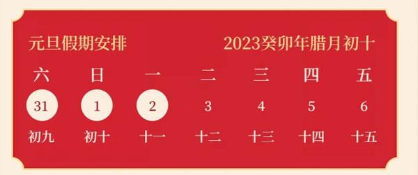 況,就2023年(nián)元旦放(fang)假安排(pái)通知如(ru)下: