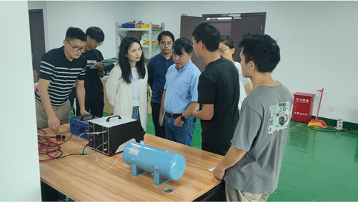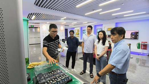 在(zài)生産研發中心和(he)工作流程的參觀(guān)中,福 光(guāng)電子團隊向泰國(guó)客戶介紹了多種(zhǒng)不同的新能 源電池檢測(cè)設備,不僅對産品(pin)特點和參數進行(háng) 講解,還(hái)逐一進行現場接(jie)線操作,讓客戶更(geng)深 入地(dì)了解了産品的細(xi)節與特點。客戶也(ye)對福光 良好的工作環境(jìng)、有序的生産流程(cheng),嚴格的質 量控制留下了(le)深刻的印象。