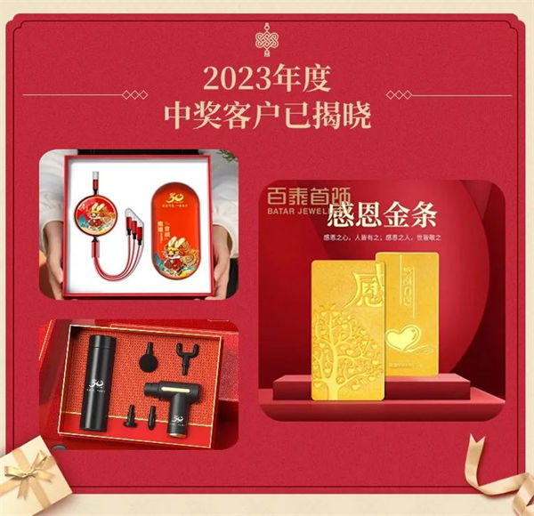 恭喜(xǐ)來自中國電信股(gu)份有限公司蘭州(zhōu)分公司的彭先生(shēng)獲得2023年度的黃金(jin)大獎!我(wǒ)們将快馬加鞭地(dì)把這份幸運,送到(dao)您的身邊。