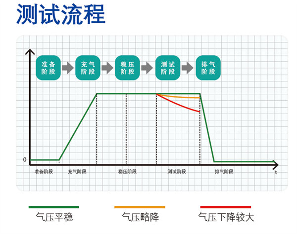 可預(yù)設工件号、容積(jī)、壓力、各階段時(shí)間、洩露限值等(děng)👈參數