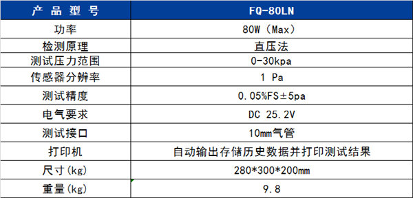 FQ-80LN氣(qì)密測試儀 是福光電(diàn)子最新研發的(de)一款高精度無(wú)損檢測設備。該(gāi)設備内置了氣(qi)泵,滿足便攜性(xing)要求。主要運用(yòng)⛹🏻♀️壓縮空氣爲介(jiè)質,然後運用高(gāo)靈敏度的傳感(gǎn)器檢🔞測壓力的(de)變化,從而确定(ding)待測試産品的(de)密封性。具備無(wu)污染,快速精準(zhun)測試等特❌點,有(yǒu)效提升新能源(yuan)行業客戶的檢(jiǎn)測效率與産品(pin)質量。