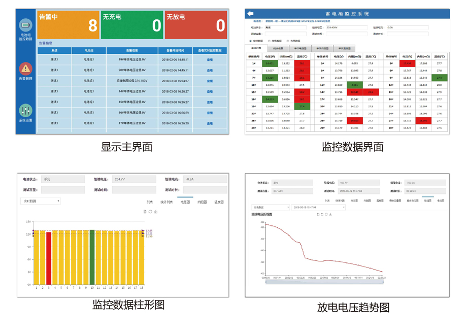● 放電容量測試支(zhi)持: 能自動判斷電(dian)池組開始放電,自(zì)動記錄整個放電(dian)過程☂️和充📞電過程(chéng)。因此,用戶無需在(zai)購買充放電測試(shi)所需 的監控設備(bèi),節省資金,并且大(dà)大減輕維護人員(yuán)的接線工作量