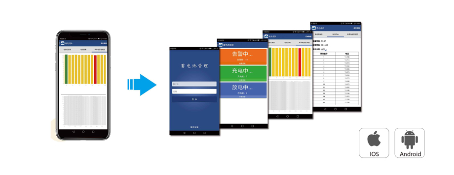 ● 配(pèi)備專用APP : 支持IOS和安(an)卓系統,能在APP上查(cha)看所有的監 控參(cān)數和電池組運行(háng)情況