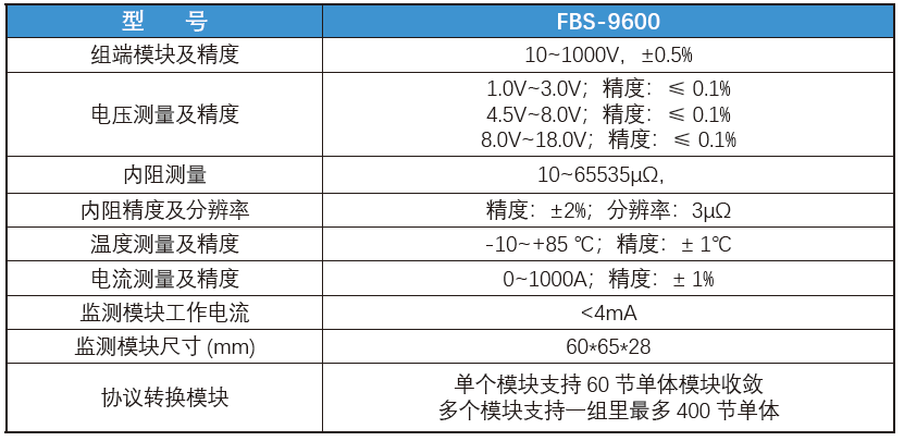 FBS-9600是(shì)福州福光電子有(yǒu)限公司新一代蓄(xù)電池性能在線監(jiān)控系統,采用先進(jin)的一拖一分布式(shi)結構方式,能夠🏃🏻完(wán)全替代💋人工❄️維護(hù)🥰模式,在線監控蓄(xù)電池所有的運行(hang)參數🌈 和性能參數(shù),全面了解蓄電池(chi)的性能狀态,及時(shí)發🔆現落後🌂單體電(dian)池,排除安全隐患(huàn),保障系統不間斷(duàn)運行。