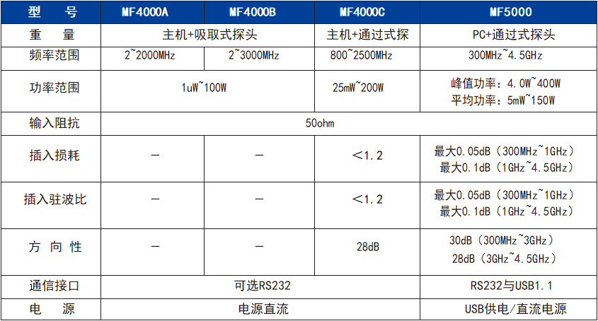 MF系列射頻功(gong)率計可用于TDMA,GSM,CDMA,CDMA2000,WCDMA,TD-SCDMA、雙(shuāng)向無線電(UHF,模拟(nǐ)和數字)、中繼系(xì)統、DVB、無線本地環(huan)路(3.5至3.7GHz)、ISM(半導體,醫(yī)療,2.45GHz)、戰術軍事 通(tong)信、雷達等領👈域(yù)的射頻功率測(cè)量。MF5000寬帶通過式(shi)功率計通🔆過USB口(kǒu)與PC連接,可進行(hang)正、反向平均功(gong)率同 時顯示、峰(fēng)值功率、突發平(ping)均功率、峰均比(bǐ)、CCDF、占空比、駐波比(bi)、反射系數、回波(bō)損耗的測量與(yǔ)顯示。