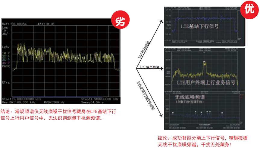 ● 産品通(tong)過1鍵設置: 實現上(shang)行,下行,底噪信号(hào)分離,不關閉同頻(pín)站即可實現♍ TD-LTE 幹擾(rǎo)排查