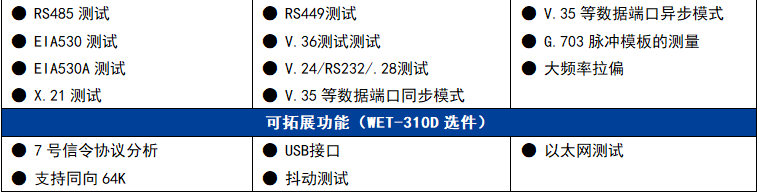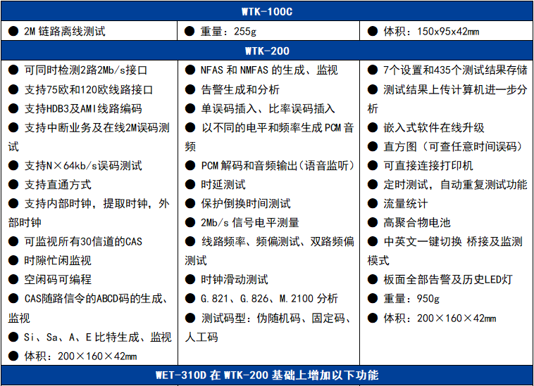 新推出的(de)系列2M及數據鏈路(lu)綜合測試儀可用(yòng)于測量與分析傳(chuán)統E1傳輸系統的性(xing)能參數并處理各(gè)種故障。它們集誤(wu)碼測試、幀🔆結構分(fèn)析、時隙分析、信念(nian)測試、信☔号分析、告(gao)警分👨❤️👨析、PCM仿真等多(duo)種🍓功能于一體。WET-310D還(hai)擁有更豐富的功(gong)能及選件功能。